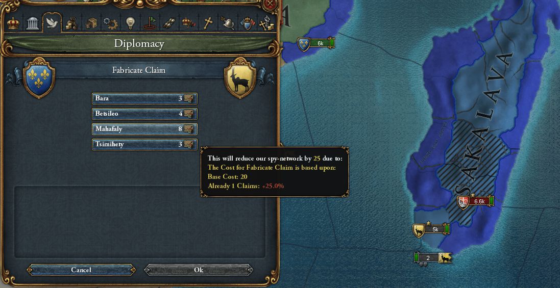 外交画面から"Fabricate Claim"した際の候補州表示に開発度合計が表示されるようになった ずっと地図から州を選択してFabricate_Claimしていたので、この時初めて気づいた。QoL改善への本気度が窺える