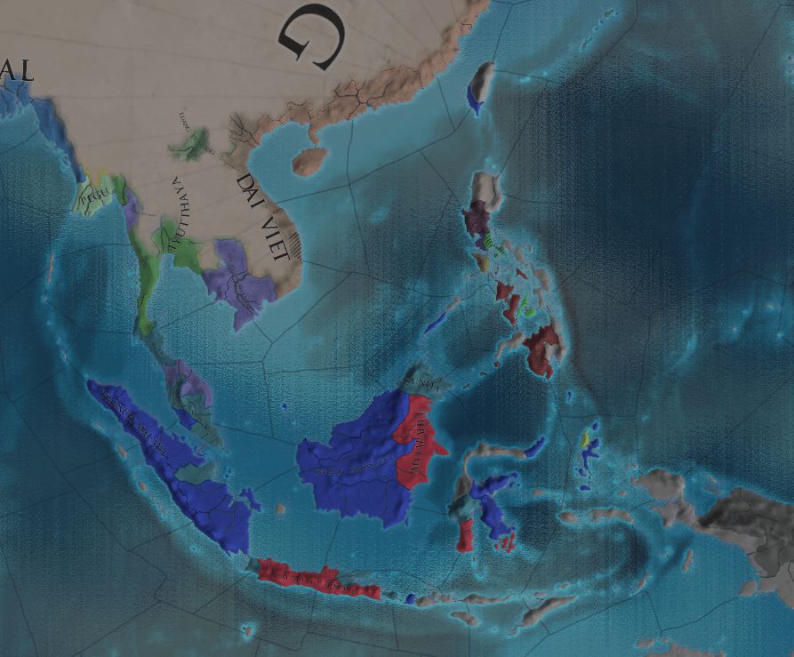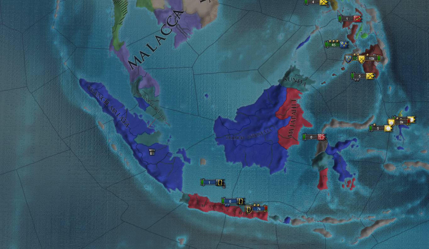 マレー半島の緑は全て先程Malaccaから獲得した州。この後殆どSundaに下賜した
