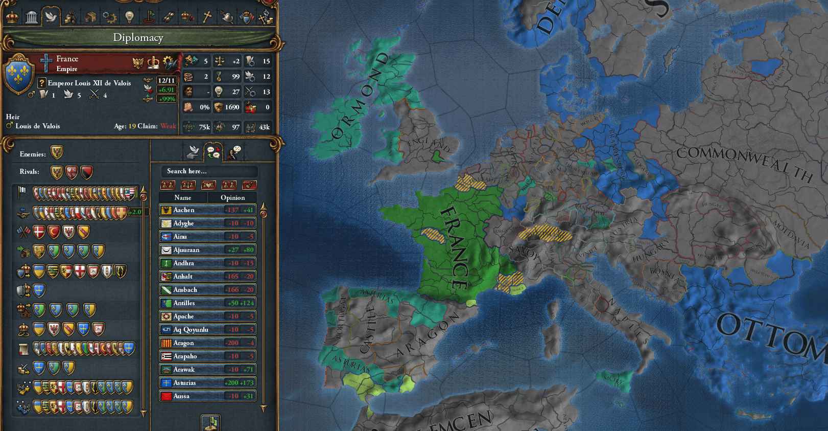 属国 Ormond Asturius(辺境伯) Sicily Mutapa Sunda Trier Saxony Salzburg 同盟 Brandenburg Ottomans Denmark Lorraine
