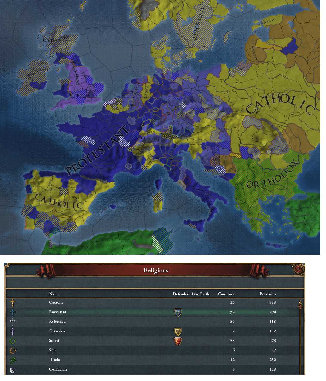 HRE圏の改革派による汚染がひどい 新大陸にカソリック州が多いせいか、欧州の宗教MAPとギャップがある