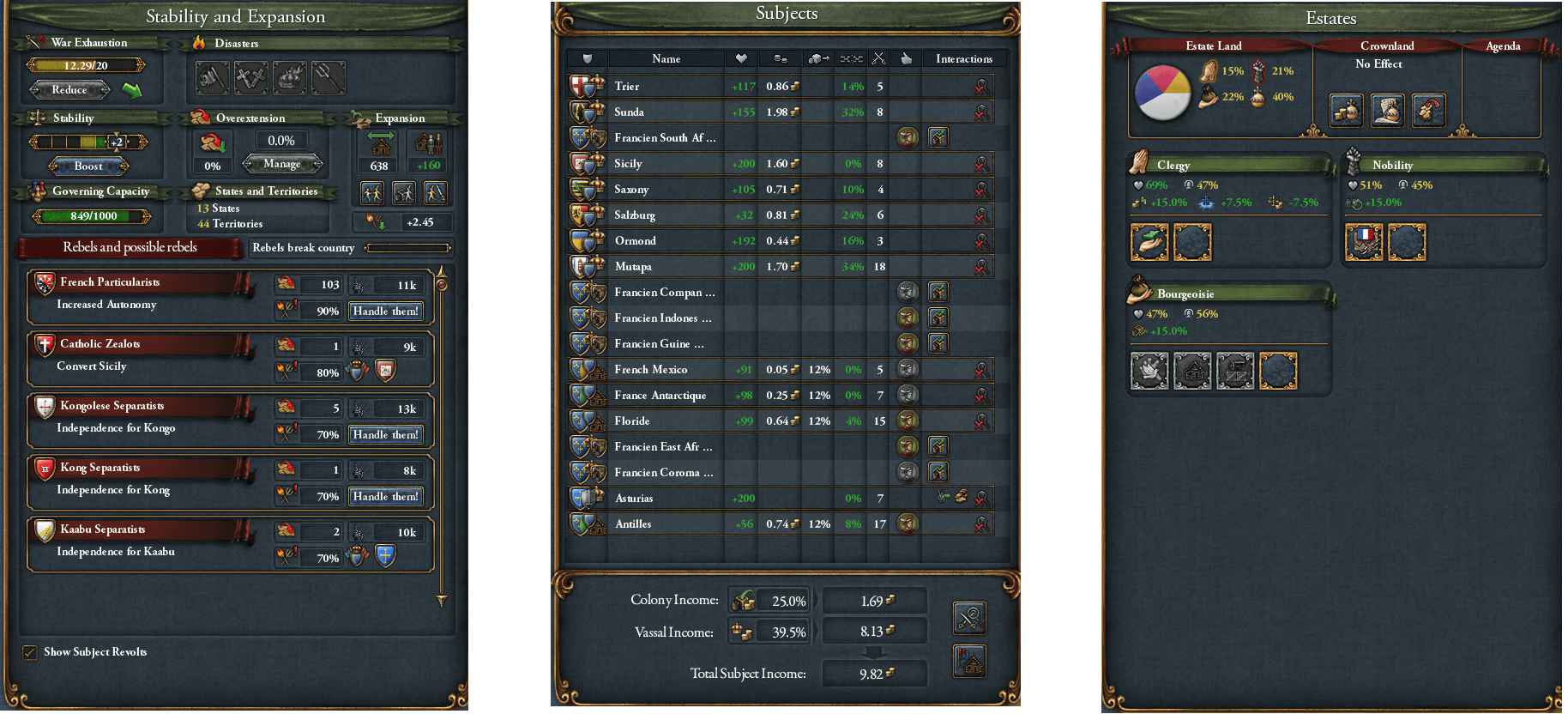 (統治)戦争疲弊が高い (属国)増えた。Mutapaは併合中 (階級)ギリギリCrownlandは40%を保っている