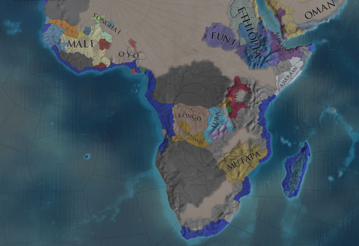 工場系というか固定値で生産量を増やす投資なので、州数の多いエリアに優先して投資 面白い点として、金の算出量を増やす工場は存在しないのにこの投資は金プロビでも有効なことが挙げられる 1.30からは貿易会社州の自治率が高いので、結局金収入があまり伸びないのは残念だが というか後から考えたら旧Malindi領はステートコアであり、Governing_Capacityにも余裕があるのだから普通にステートにすれば良かった まだ1.30のシステムに肌感覚が追い付いていない
