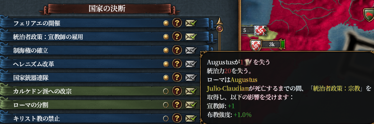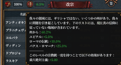 いくつかのバフのおかげで宗教統一度は100%になっていますが