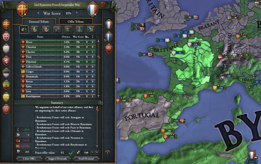 同時期にオーストリアとイタリアの回収も果たし、1761年、Byzantiumはガリアとヒスパニアを皇帝の手に戻し、一人の皇帝を中心としたヨーロッパは一時の安寧を取り戻すのでした。