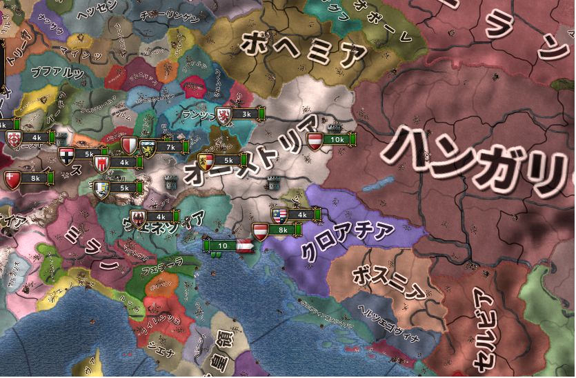 前述の通りオーストリアは同君連合が多い。筆者はプレイ途中で気づいたのだが