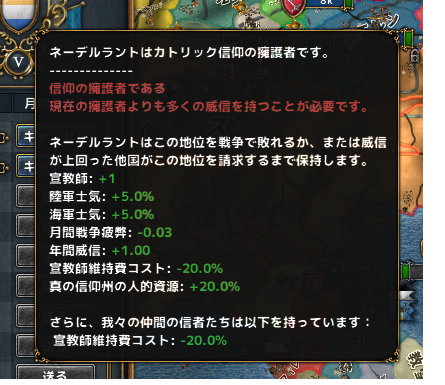 カトリックの教皇システムによって【併合コスト-15%】なりなんなりを使用可能だ。
