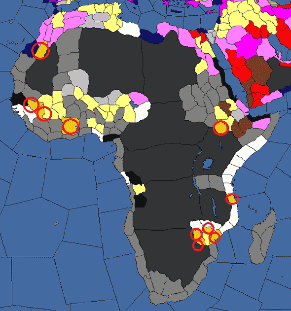 アフリカだけで10州獲得可能なのですね。しかも海岸沿いもしくはそれに近いところが多い、と。