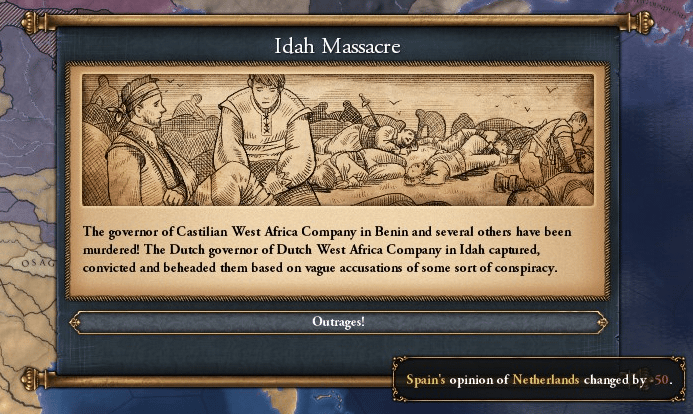 ブルゴーニュを仲良く殴っている間は良かったのですが、スペインとオランダの仲を引き裂く出来事が起こりました。