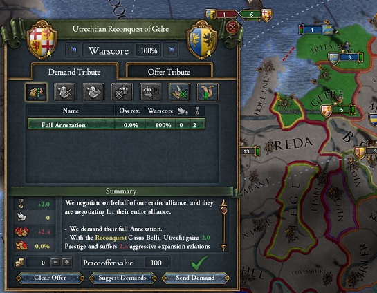 ユトレヒトの市民は困惑した。だがいつの世にも無謀な愚か者はいるものだ。初めはごく少数の者たちが賛同するのみであったが、フリースラントとの同盟締結も後を押して次第にこれはユトレヒト中に波及し、1445年には5000人の志願兵を募るに至った。そしてついにユトレヒトの市民はゲルデルン公国領の旧領奪還をその名分としフリースラントと共にゲルデルン公国に攻め入ったのであった。