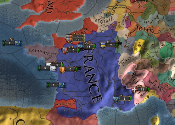 「まだ朕のユトレヒト一国でブルゴーニュと戦うことはできないよー。同じくブルゴーニュを敵対視する南の大陸軍国フランス様と同盟するよー。」