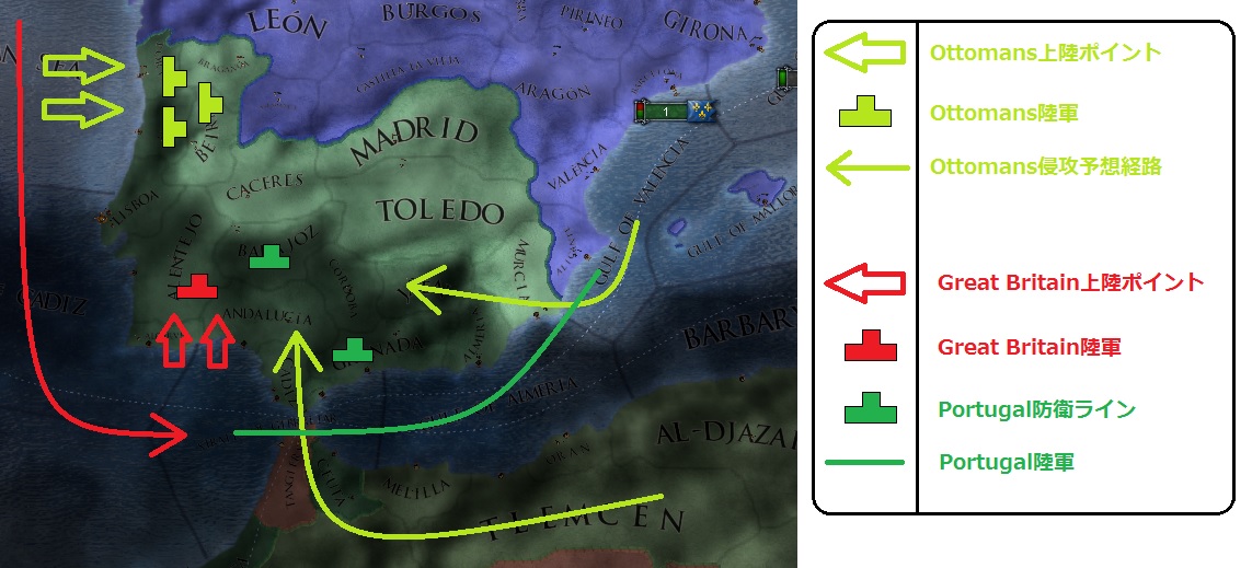 まずは属国のCastile領北米から60kの軍団を送り込みだ上で一気に制圧を図り