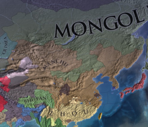 ※満洲が躍進してるの図。一見モンゴルも頑張っているように見えるが実は満洲に属国化され抜け出せなくなった。