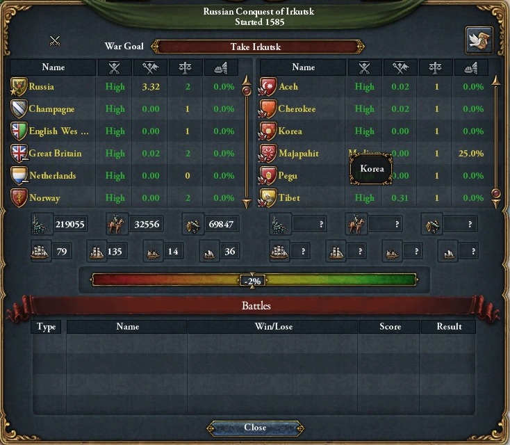 粗方戦勝点を稼ぎ、Ming領北米プロビの約半分を対Great Britain割譲し