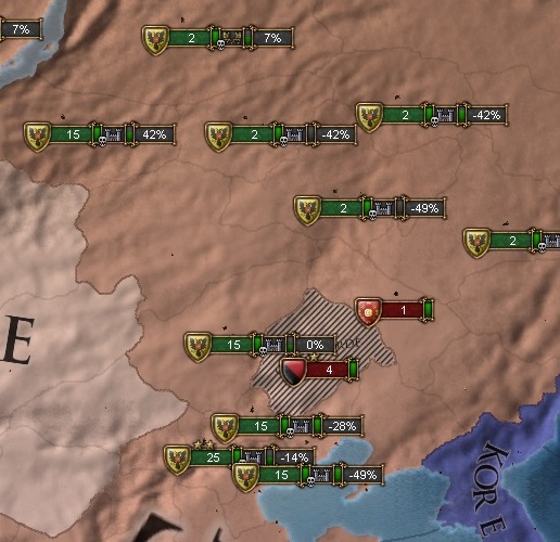 Beijin近郊を第一線と定め、シベリア方面では2k程度の軍団をばら撒き占領に当たっていたのだが
