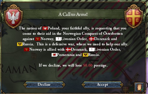 開幕戦争ですか。しかし和平期間は9年もありますので東西両方面に進出するのには私も賛成です。オーストリア・ポーランド両国がついて来てくれるようなので迷わず宣戦しましょう。
