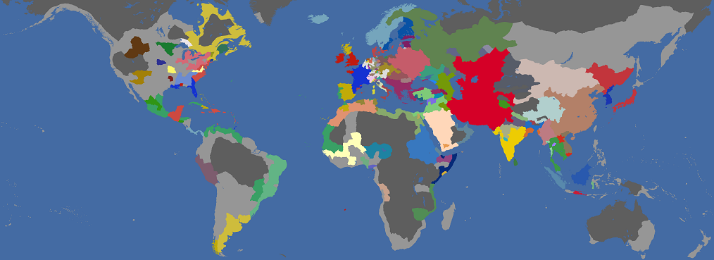 ※1600年の世界地図:オスマンが解体寸前な代わりにトリポリが伸びてますね。和平期間が5年のままならオスマンをエジプトに侵出させる前にはアナトリア統一できていたんですけどね・・・。残念です。なぜかスウェーデンではなくノルウェーが無双しています。ロシアもいよいよ動き出しましたがティムールにはまだ手を付けてないのかな?大内は日本化したら東アジア皇帝の天下が終わってしまったみたいです。