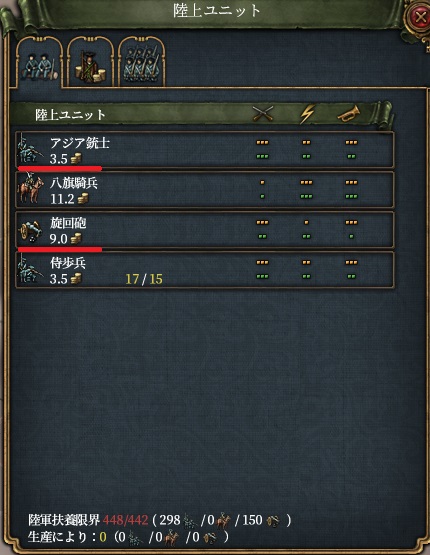 テングリ+幕府+その他補正でユニットのコストをおかしくして、VeryHardAIに対抗できる規模の軍拡しました