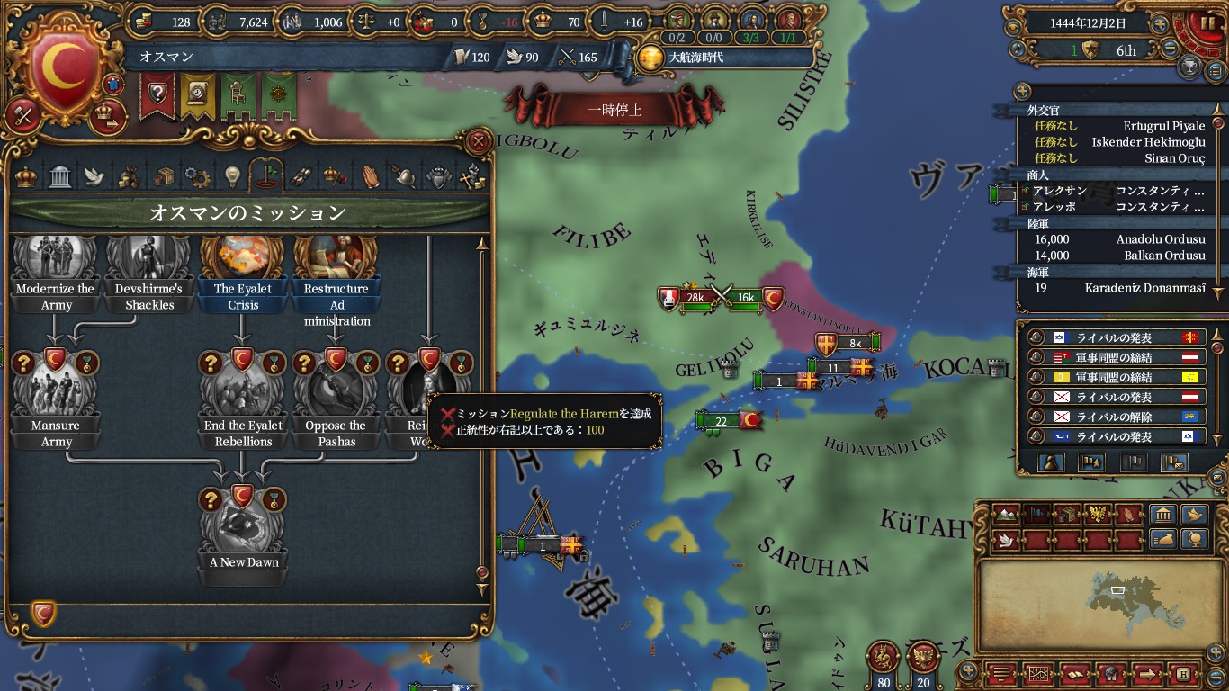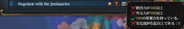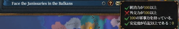 これを達成するとイェニチェリと交渉かイェニチェリとの対峙(バルカン)のディシジョンを使えます。
