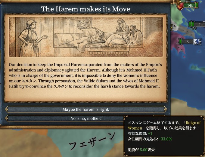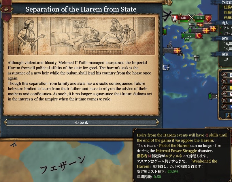 そしてなにより、この補正がある場合に権力闘争国難を終えるとハーレムを残した新オスマン政体に移行できます。