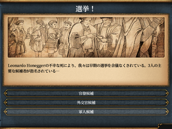 新代表ウルリヒは代表としての威信を示すためにさらなる侵略戦争へと歩みを進める。国は疲弊し兵はその数を減じるもスイスを止めるものはいない。戦勝による熱狂、征服による興隆、その陰で共和国が音を立てて崩れ行く。次回第3話AAR/Helvetia/征服の代償。ロンバルディアの心臓をわが手に…。