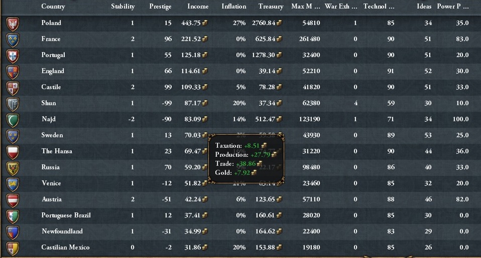 とにかく、州の数に焦ってインド東南アジアという文化・宗教が違う上に、豊かでコア化コストの高いところを終盤一気に抱えてしまったのが反乱祭り最大の要因だった。