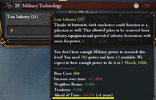 ちなみに、AAR/SunsetInvasion/第3話:忍従之刻では、1591年、陸軍技術15で時代最先端に追いついているので、69年の遅れとなる。