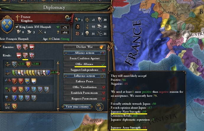 スペインを共通のライバルとみなす日本とフランスとの間で同盟が締結された。