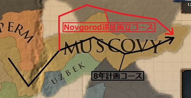 というのも、シベリアに進出するにはPermを属国併合するかKazanの東側プロビを取らないことには進まないのだが