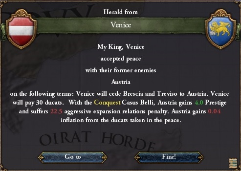 Ottomansの影におびえながらも健気に生きるAustriaは、初手Veniceで2プロビ獲得し