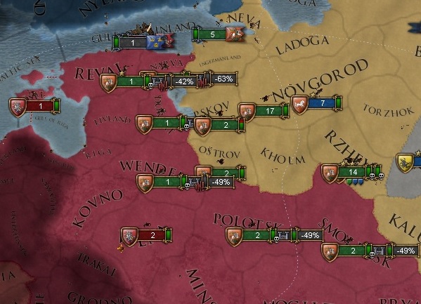 NovgorodだけならまだしもLivonian OderとTeutonic Oderがセットで付いてきたことで割と苦戦したが