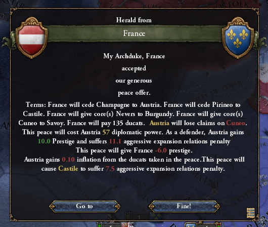 これまでハプスブルクにしてやられたばかりだったフランスが凱歌を上げたのは言うまでもありません。