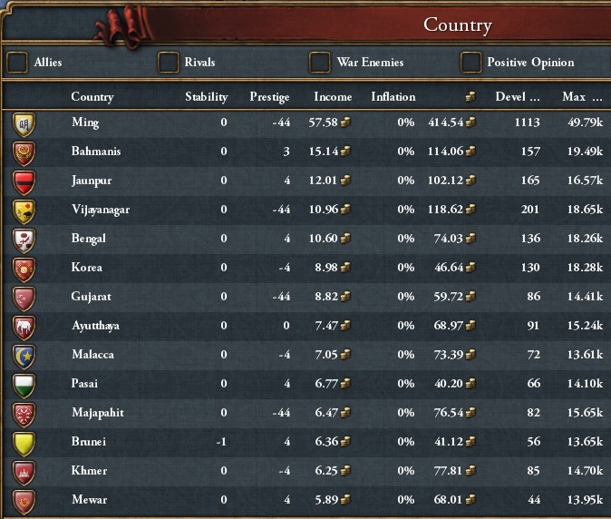 ゲーム開始から10年経過して外交併合できるようになったが、淘汰がかなり進んでいるな。