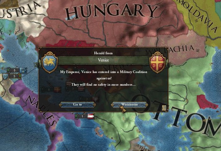 いつでも手に入ると思って甘く見ていたら、ヴェネチアと敵対連合を組まれてしまった。