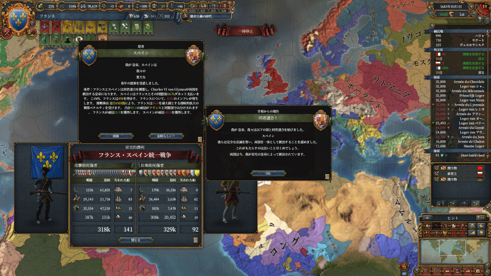 この一連の流れで欧州全体が激おこになりまして、その後しばらく懲罰戦争が辛かったです。