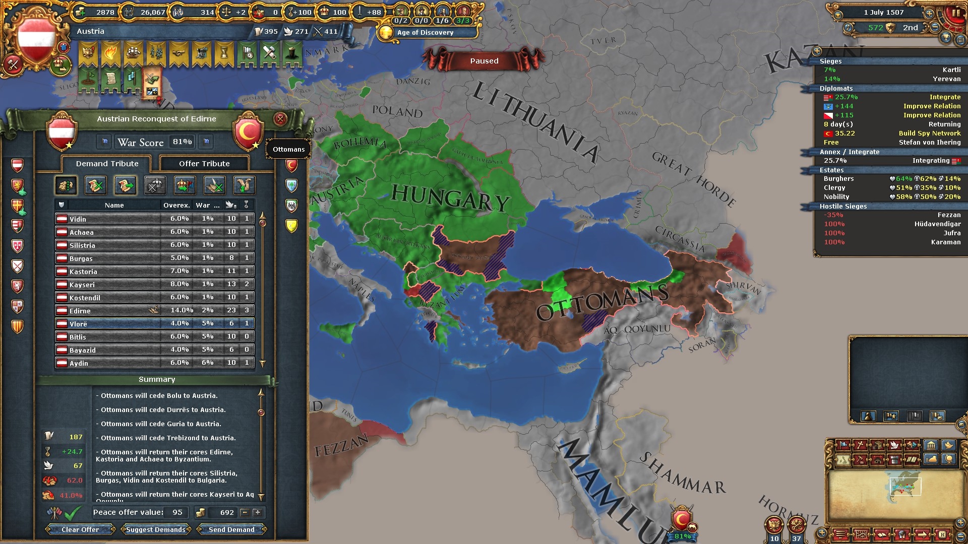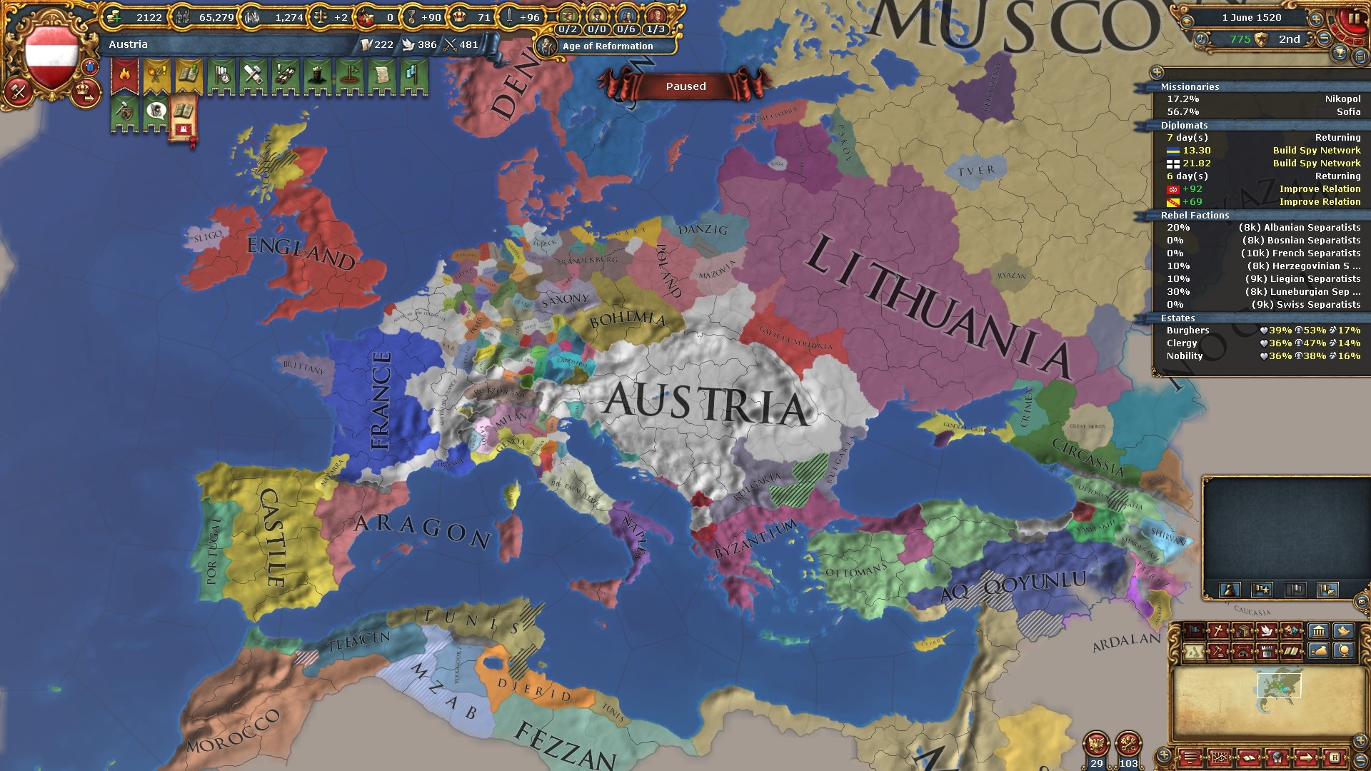 ミッション「ハプスブルク家の拡大(Spread the von Habsburgs)」報酬の外交併合コスト-20%を活用しています。
