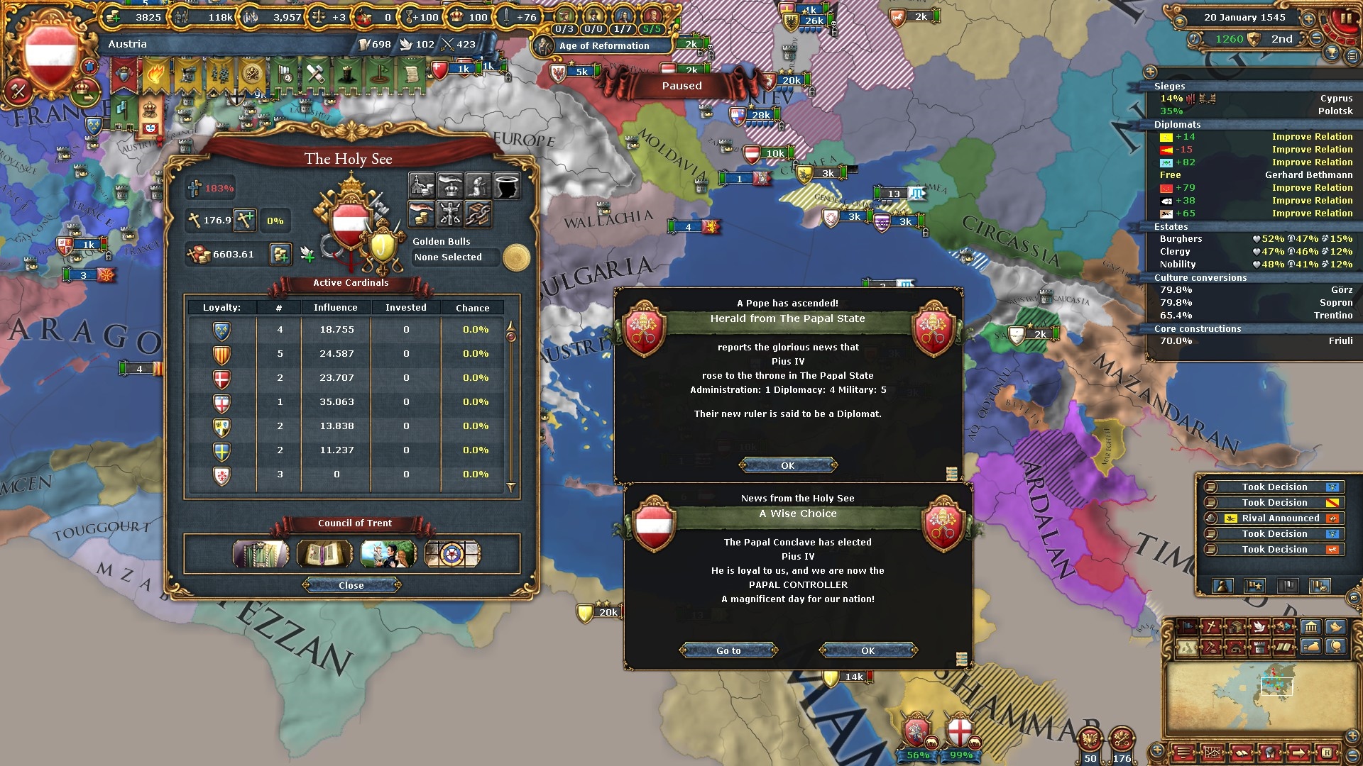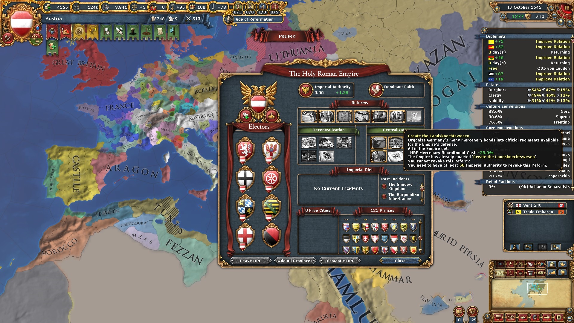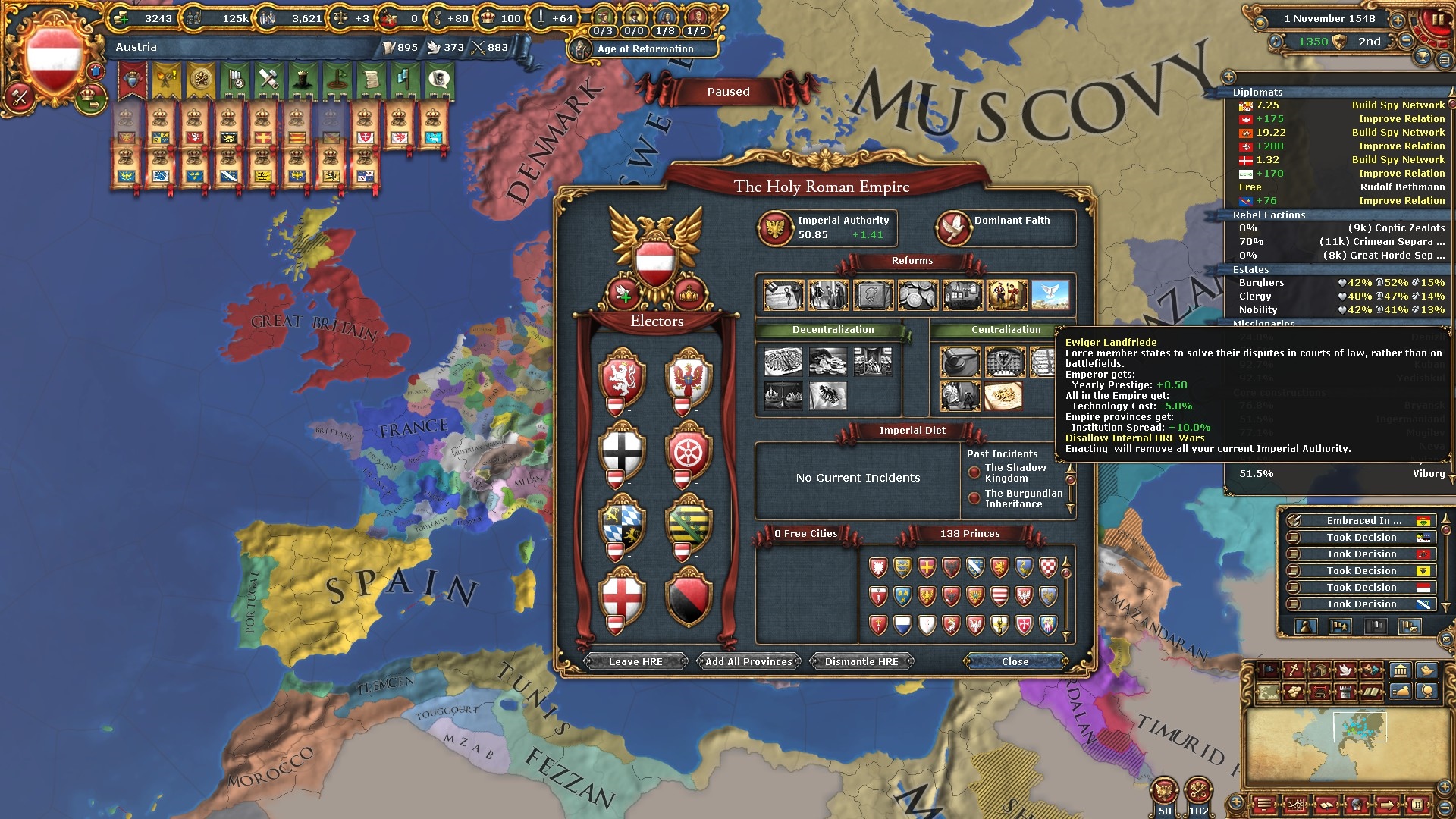 ここで遂に9番目の帝国改革「諸侯特権廃止(Revoke the Privilegia)」を通過させました。