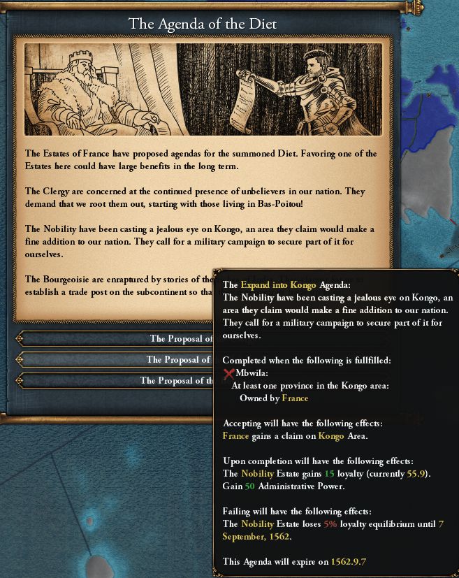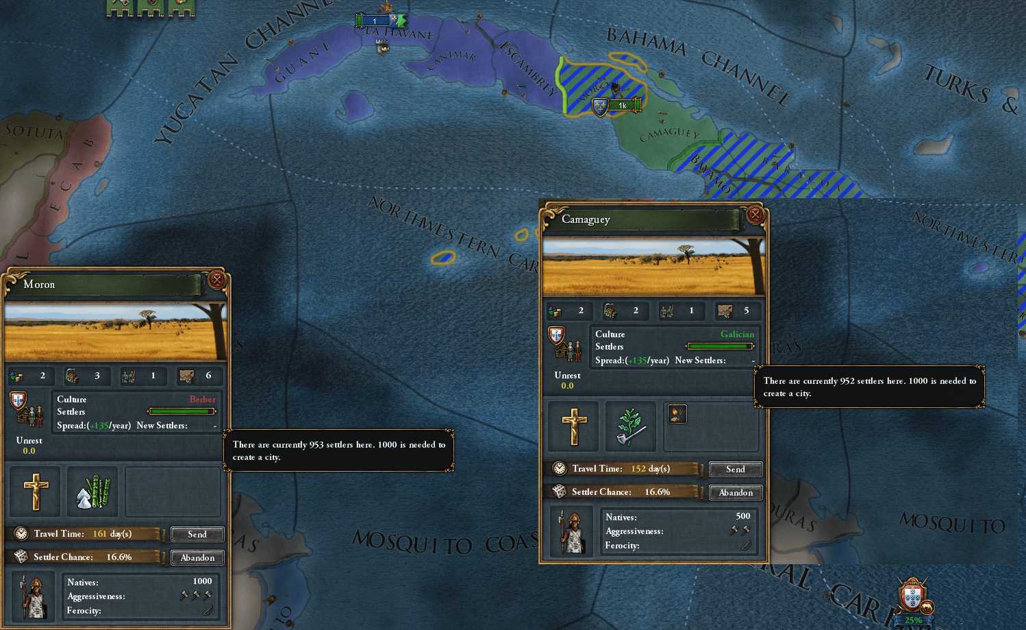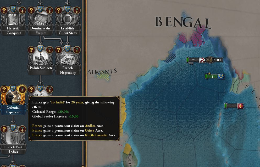 植民地主義CBの仕様を勘違いしており、不適正な要求で大量のDIPを浪費してしまった 単純に新大陸やGC開始時の未入植地全てを対象にしていると思い込んでいた よく考えればAE25%・戦勝点コスト50%でそれら全てが対象になるなら、バランス崩壊するレベルの便利すぎるCBになる