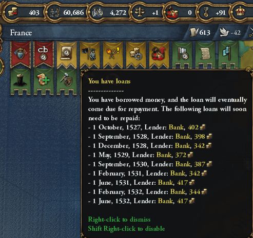 この状態で要求を送って受諾されたのだが、実際に獲得できた金額は1ducats(戦果報告ダイアログの表示と左上の国庫の変化の両方)だった