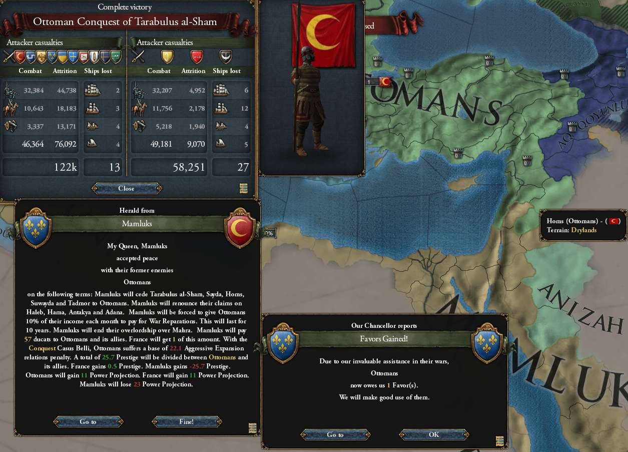 1554/08 OttomansのMamluks戦が終了。Favorを5、PPを20稼ぐことができた