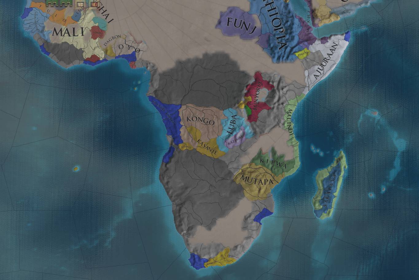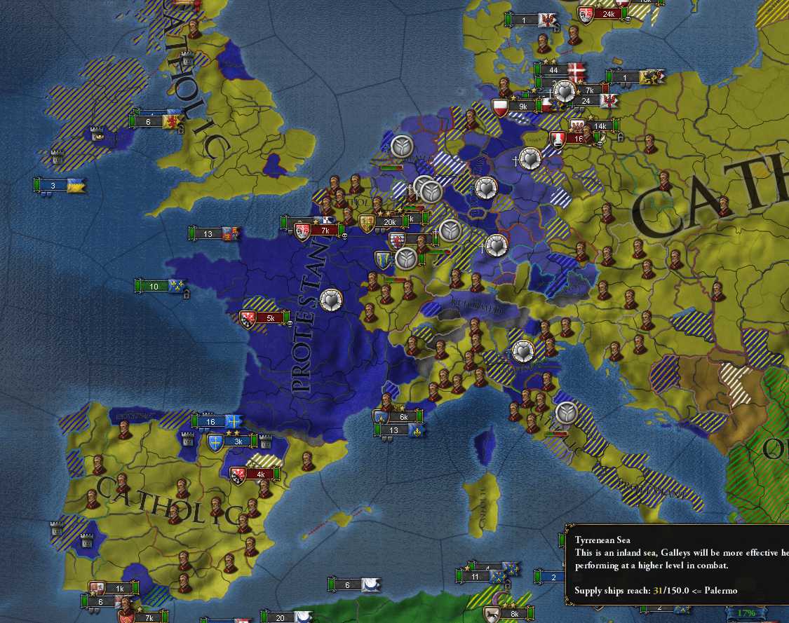 属国 Ormond Asturius(辺境伯) Sicily Malindi Mutapa Sunda 同盟 Brandenburg Ottomans Denmark プロテスタントリーグが発足するまでは派手な動きができない
