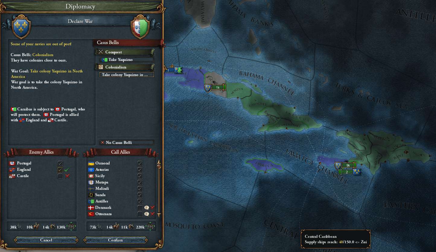 1555/12 Portugalの植民地国家Calaibasに宣戦布告。Englandの同盟国Haianaut/Aragon/Verdenも参戦