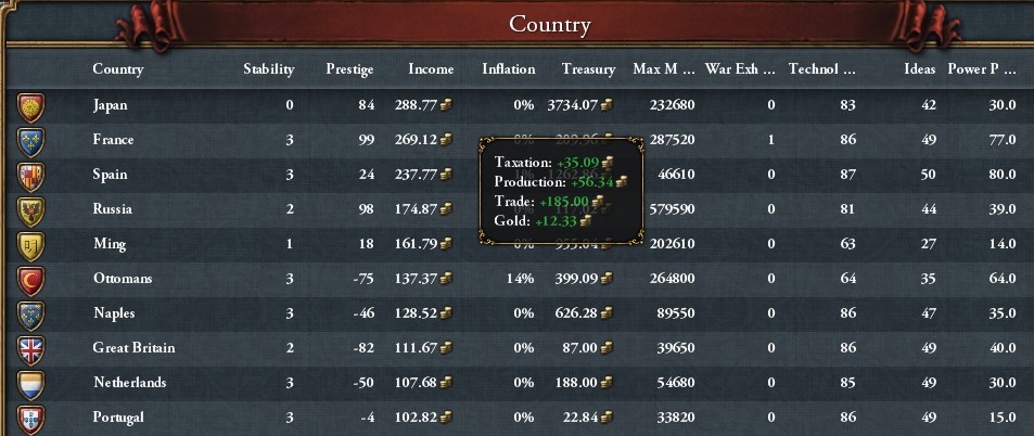 税・生産の合計の倍を交易で稼ぐ交易立国である。