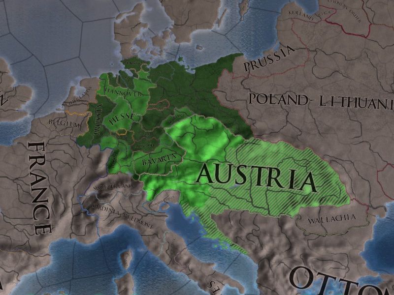 オーストリア領ハンガリーが領域に編入(厳密にはオーストリアに付随)されていますが、アルザスロレーヌ地方、低地地方、ヘルヴェティア(スイス)地方、ロンバルディア地方は除かれています。