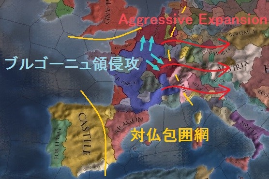 交渉が不意になった時、Brugundy・Castileを使った包囲網をかけてくることが懸念される為