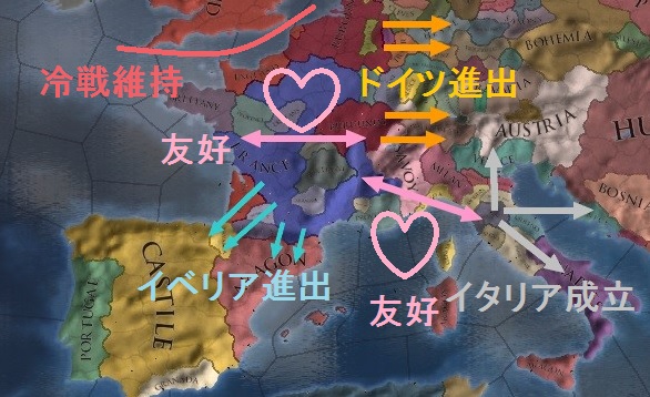 Franceにとって周辺諸国に『Coalition』を組まれて身動き取れなくされる事が一番厄介なのである。