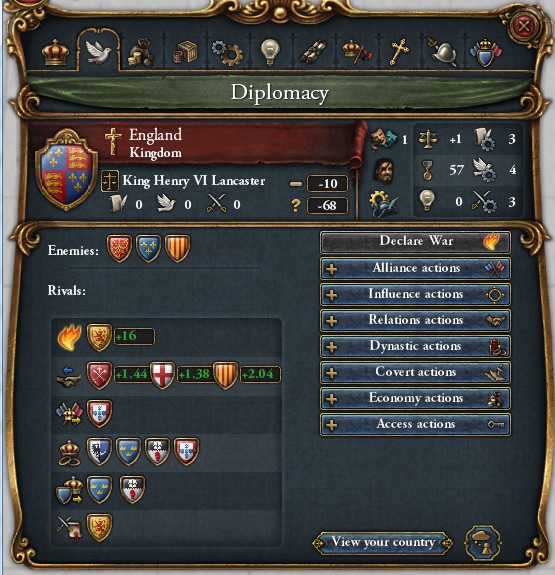 開幕イングランドと講和し、直後にBrugundyを殴って屈服させることも考えたが
