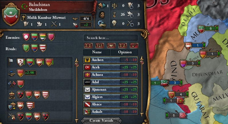 一方、欧州から離れた場所に位置するBaluchistanは絶賛インド征服キャンペーンのさなかにあり