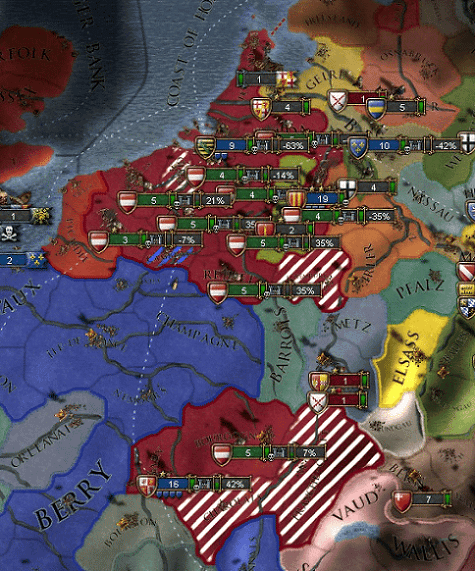 ここでもフランスとの対ブルゴーニュ同盟が効いて、ブルゴーニュは再びほぼ全土を占領されます。