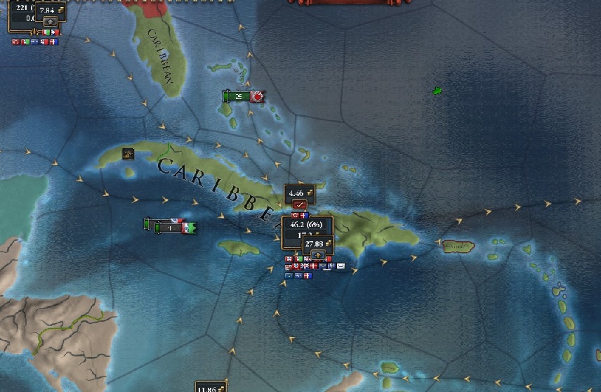 列強にカリブ海諸島領有のディシジョンが発生し、狙われやすくなる。