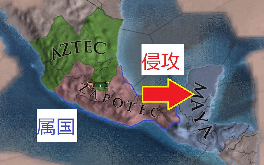 サポテカから1州割譲させ、マヤへの領有権偽造をできるようにしておくこと。